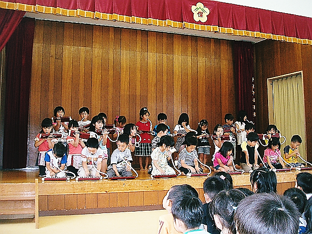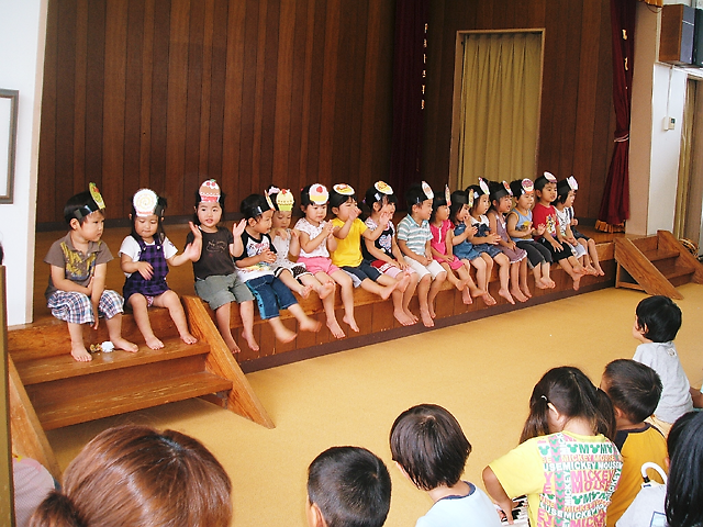 そして、きりんぐみは(森のくまさん・てのひらを太陽に)のメロディオン演奏そして、宮沢賢治の“雨にも負けず”の暗唱をしました。みんな輝いていました。がんばりがおほしさまにとどきますように・・・