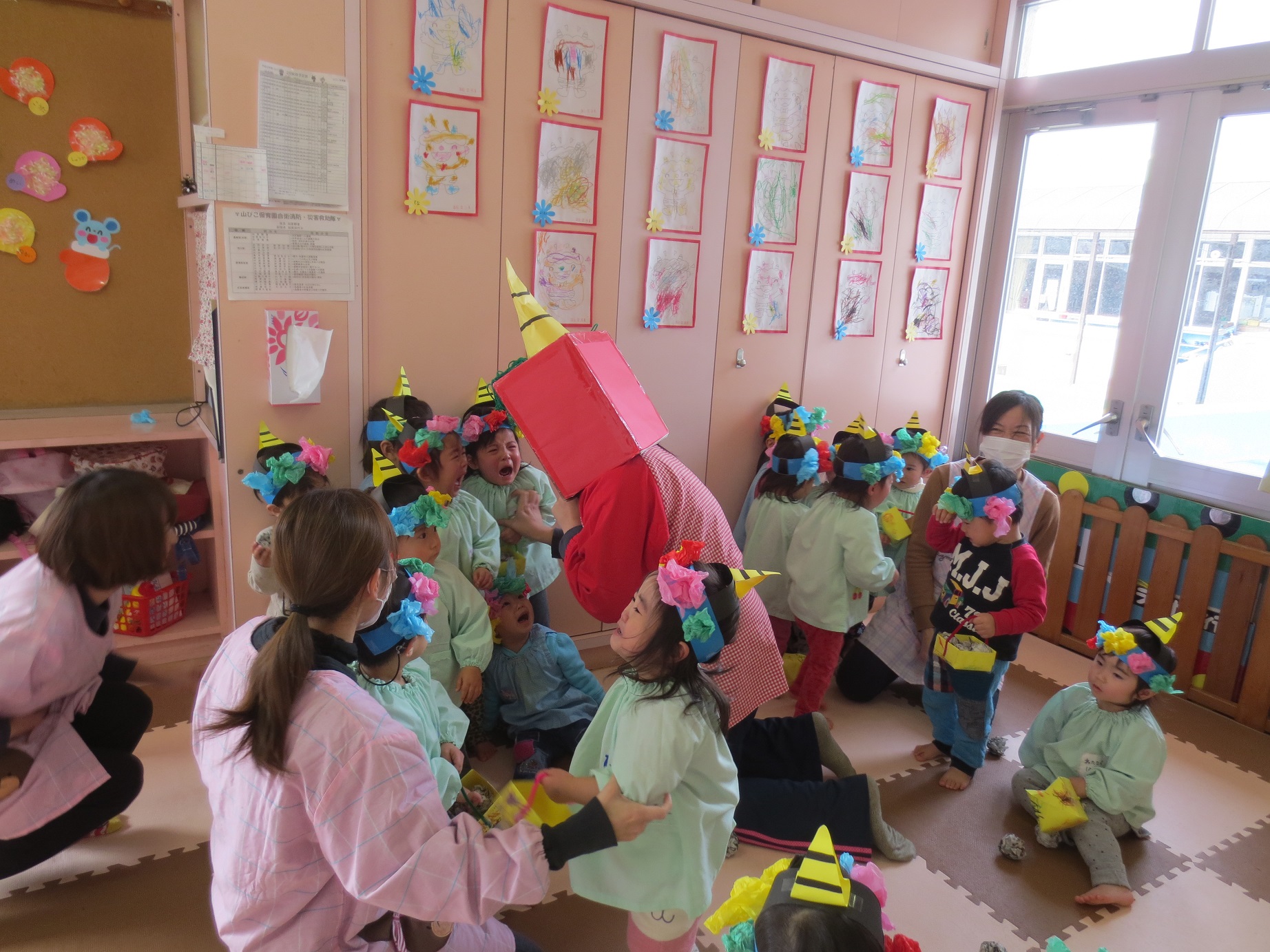 一人ひとりの見せる表情が、かわいくて〜かわいくて〜、抱きしめたい気持ちが高まり・・・(でも鬼の姿の私に近づいてくれない子どもたち・・・です)